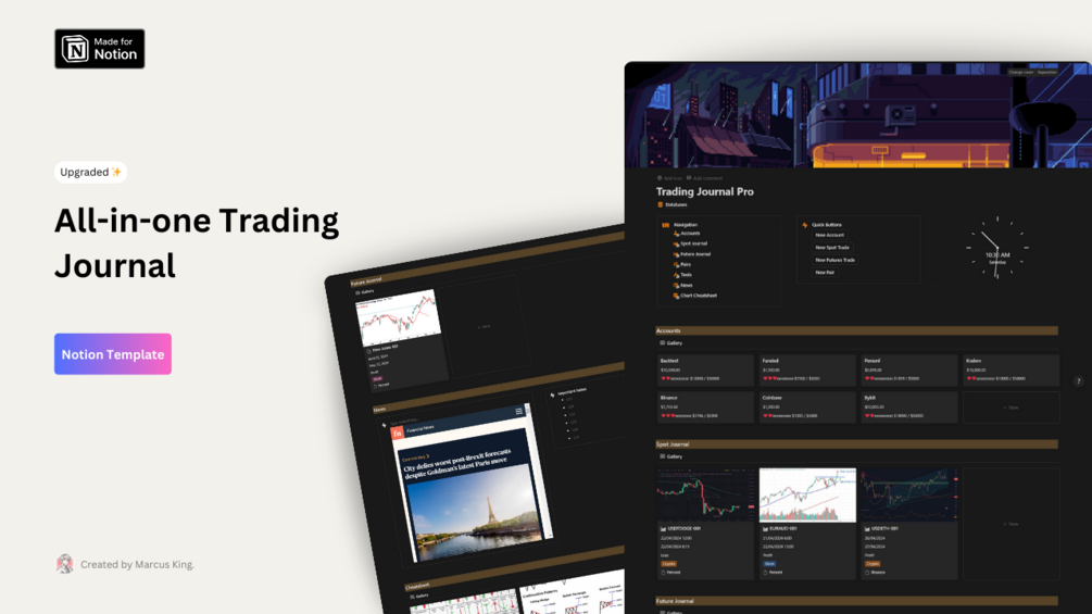 So, let me Introduce you to the "All-in-one Trading Journal". This Journal is made inside Notion with powerful automation to save your precious time and focus on important things.