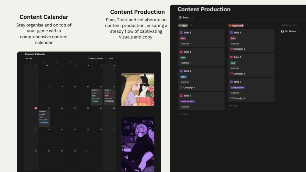 ✨ Content Production: Here you can add new content ideas and put them into the production pipeline