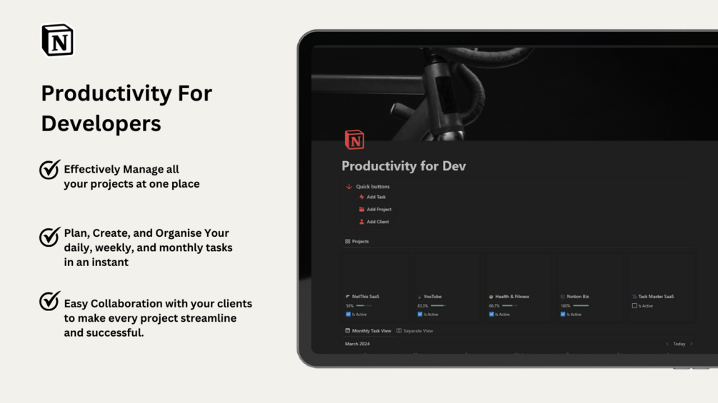 Conquer Your Workflow: The "Productivity Tool for Developers" Notion Template